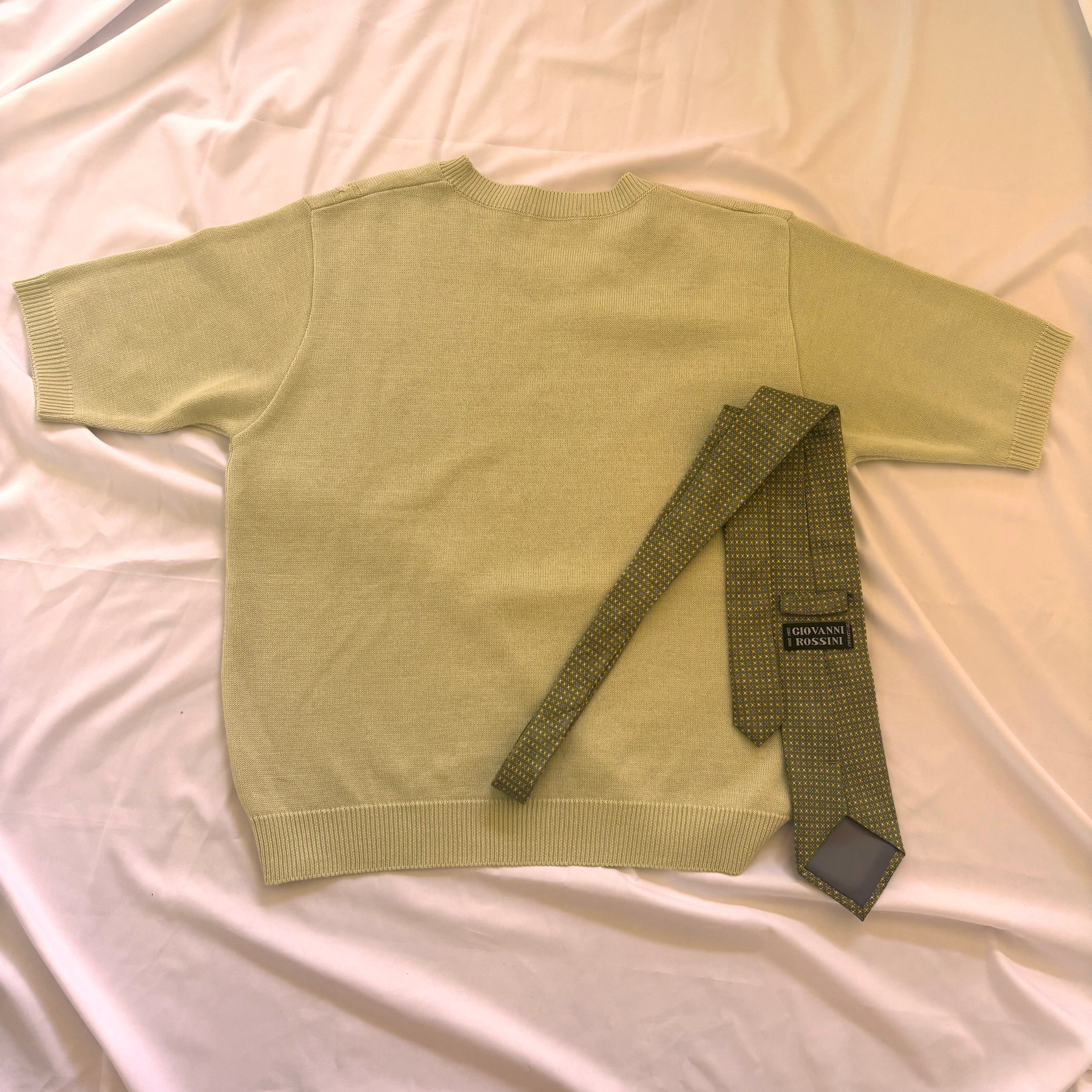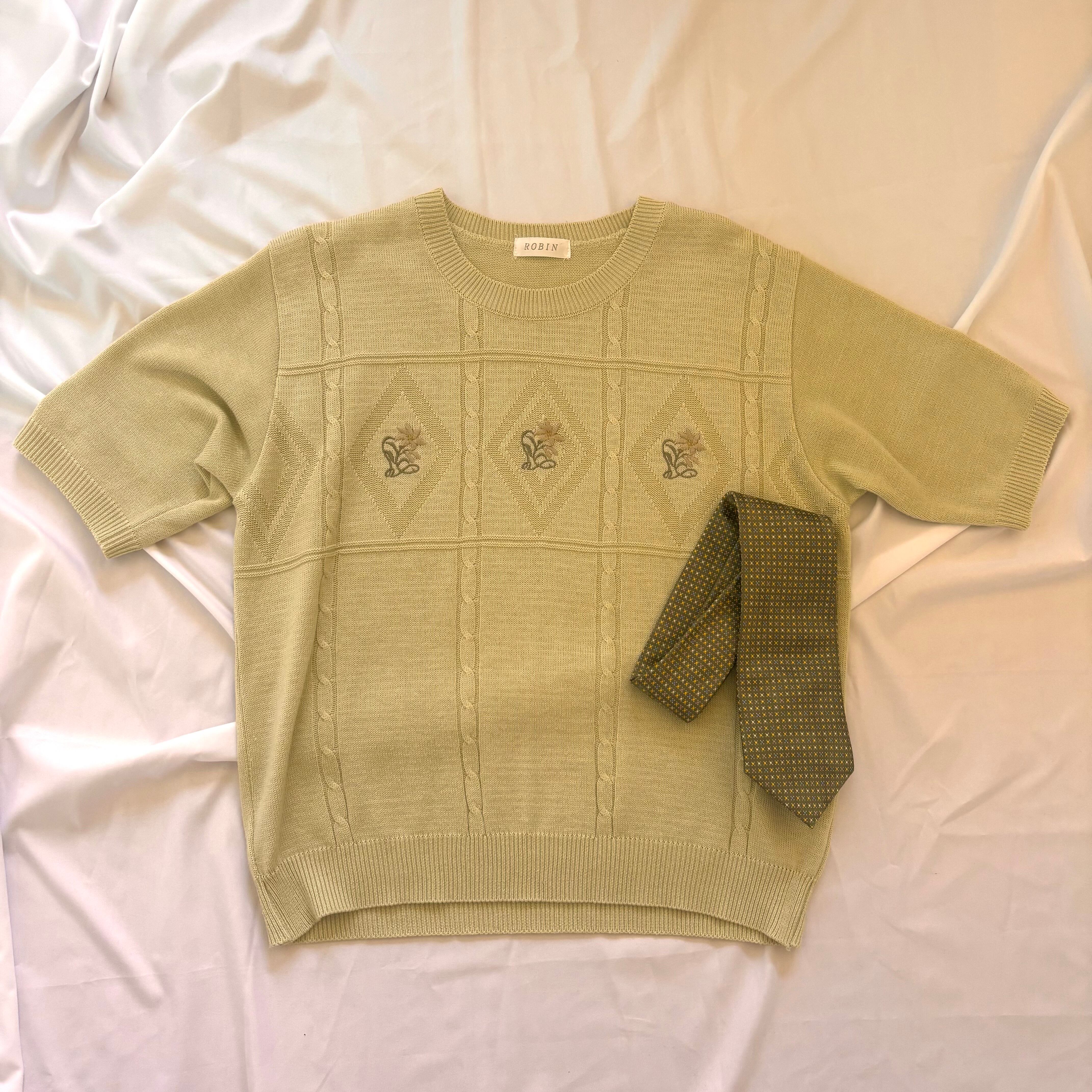 レトロなダサ可愛い半袖ニットとレトロな同系色のネクタイのセット★